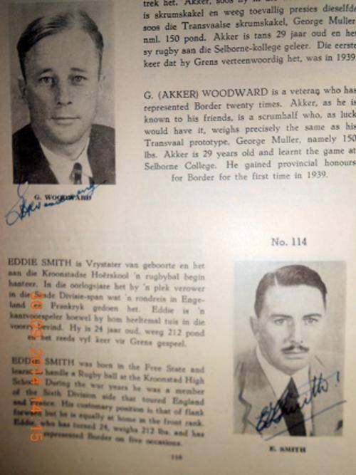 A 124 page booklet published for the Springbok Trials in 1949 prior to the All Blacks tour. Each of the 114 players selected for the trials has a short biography both in English and Afrikaans together with a photo, , a second-hand booklet in very good condition.