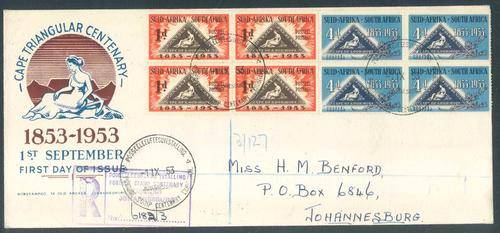 South Africa 1953 "Cape Triangular Stamps" First Day Covers with different Cover illustrations x (2)