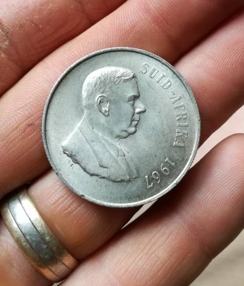 South Africa 1967 Afrikaans silver R1. Good condition. South Africa 1967 Afrikaans silver R1. Good condition.