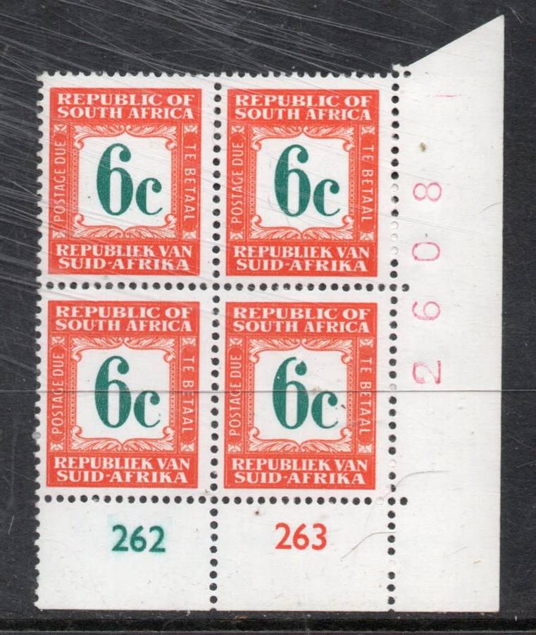 South Africa, 1969 - 71, Postage Due, 6c Control 262, 263, sheet no 2608 MNH **