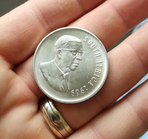 South Africa 1969 English silver one rand. South Africa 1969 English silver one rand.