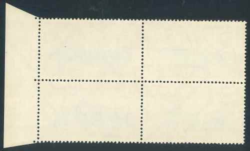 Interesting South Africa 1969 "100th Anniversary of ZAR" right marginal Block of (4) x 2 1/2c stamps on Swiss paper (SACC 302a) with the Variety "Dark blue spot on the Mountain above the horses on top right stamp". The Block of stamps is in unmounted mint condition (MNH).