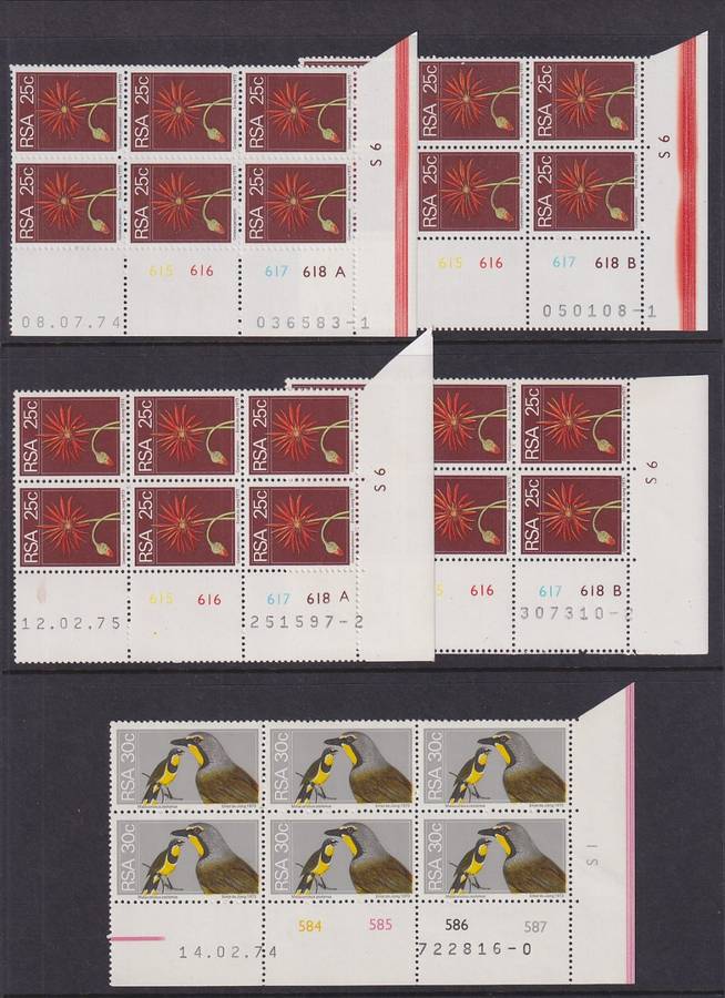 SOUTH AFRICA - 1974 2nd Definitive Series all values in control blocks and different printing dates in both A and B panes if printed as such, 30c to R1 were printed as single panes (97 blocks all MNH)