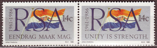 SOUTH AFRICA 1986 25th ANNIVERSARY OF RSA HORIZONTAL PAIR COMPLETE UNMOUNTED MINT