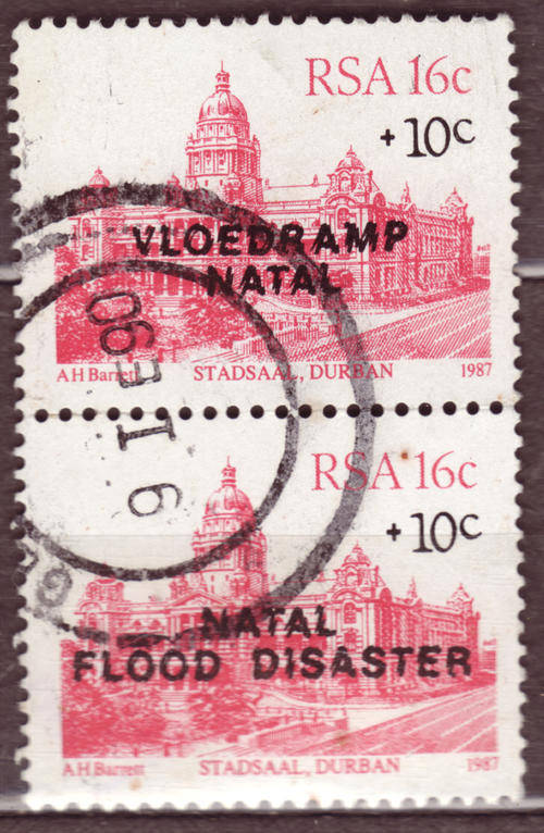 SOUTH AFRICA 1987 NATAL RELIEF FUND OVERPRINT VERTICAL PAIR COMPLETE POSTALLY USED SET