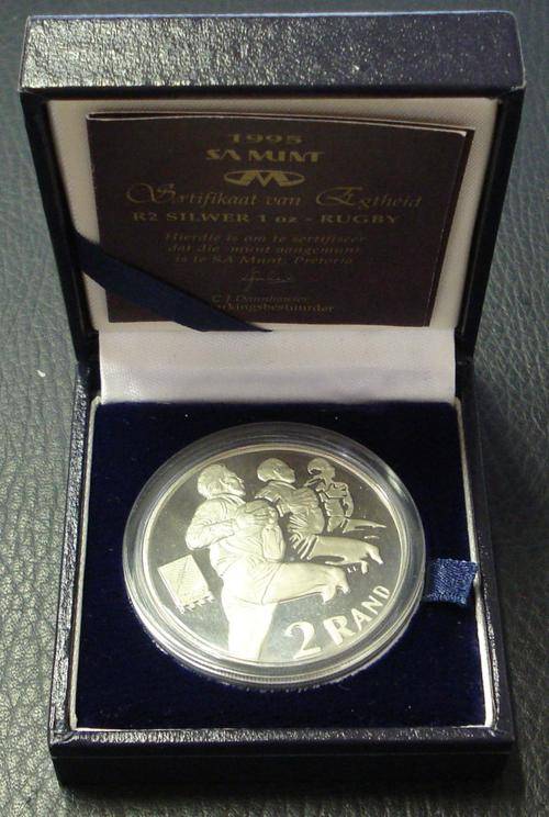 SOUTH AFRICA 1995 RUGBY PROOF SILVER TWO RAND