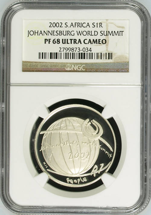 South Africa 2002 World Summit Proof Silver R1 - NGC Graded PF68 Ultra Cameo - Sought After !!!