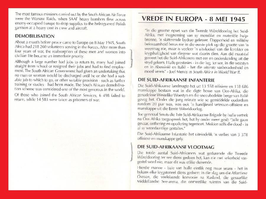 SOUTH AFRICA COMMEMORATIVE POST CARDS 1995/05/08
