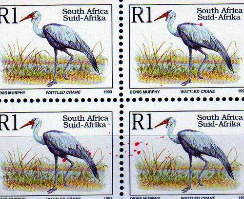 South Africa ERROR!! 1997 SACC 837b extended control block with Red Blobs and spots + scratch trough R of R1 second stamp from left top.