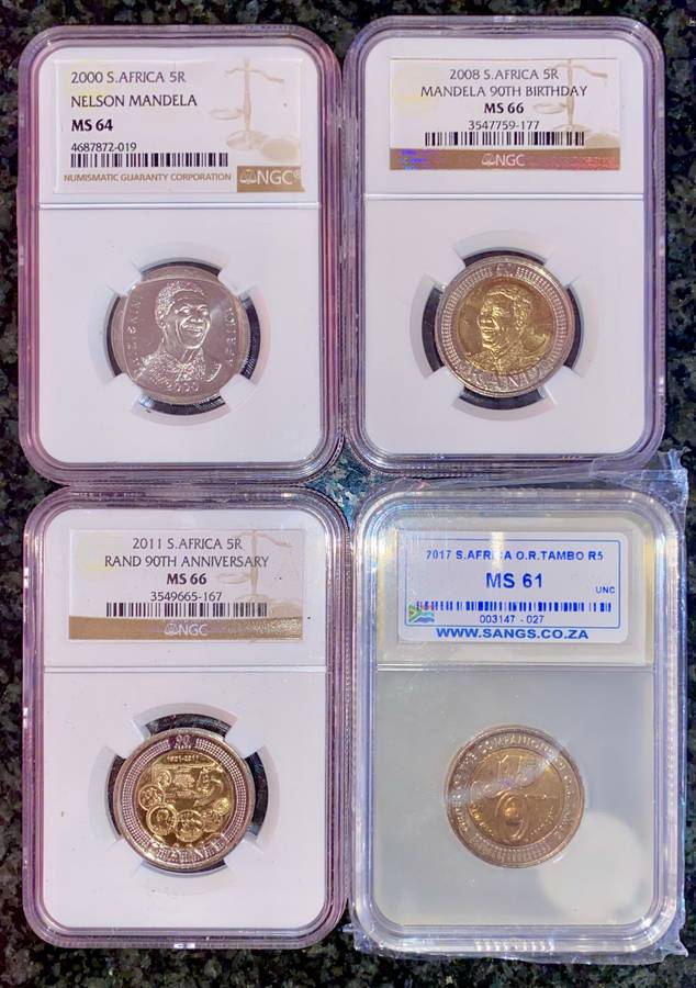 South Africa.Graded commemorative set R5 - 2000 MS64 - 2008 - 2011 MS66 & 2017 MS61(1 bid takes all) South Africa.Graded commemorative set R5 - 2000 MS64 - 2008 - 2011 MS66 & 2017 MS61(1 bid takes all) South Africa.Graded commemorative set R5 - 2000 MS64 - 2008 - 2011 MS66 & 2017 MS61(1 bid takes all) South Africa.Graded commemorative set R5 - 2000 MS64 - 2008 - 2011 MS66 & 2017 MS61(1 bid takes all)