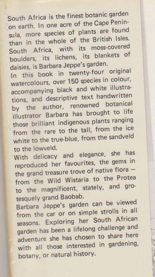 South Africa Is My Garden By Barbara Jeppe, published in 1984, hardcover with protective wrap, scuffing etc & inscription on 1st page otherwise all good.