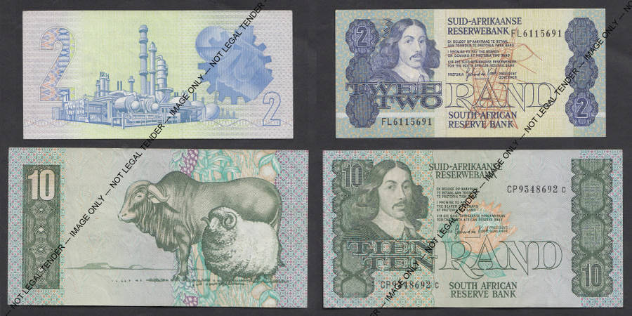 South Africa, Jan van Riebeeck R2 and R10 of the 1980s (One bid takes both notes)