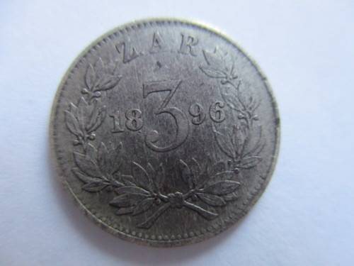 SOUTH AFRICA - LOVELY PAUL KRUGER 3 PENCE OR TICKY 1896