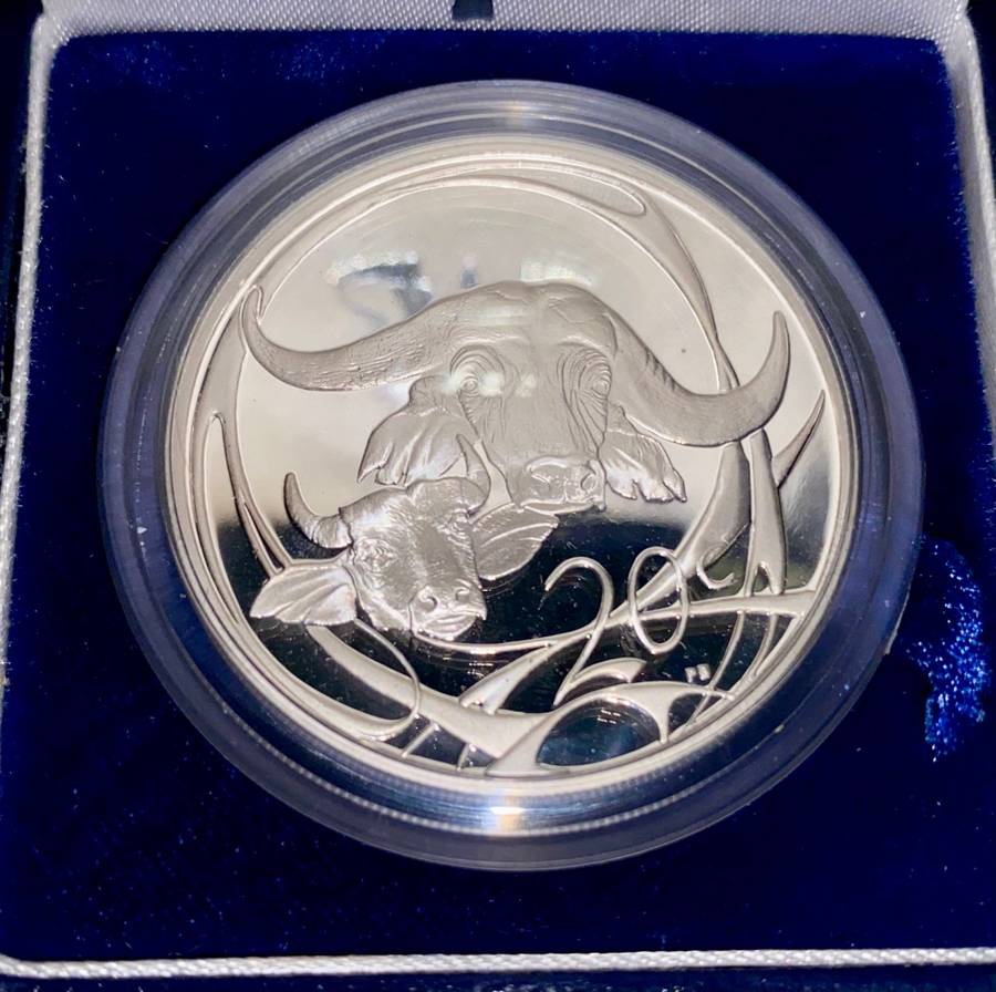 SOUTH AFRICA PROOF SILVER 1OZ -- 20 CENT WILDLIFE AFRICAN BUFFALO -- IN BLUE SA MINT BOX & CAPSULE