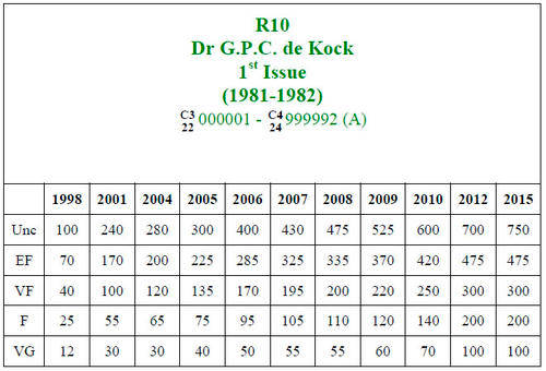 See the auction listings commencing R10 Version 1 through to Version 15 if you wish to follow the sequential, chronological tutorial of the history of the R10 bank note (or alternatively click the button to view the sellers other items to follow the chronological tutorial).