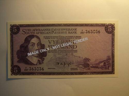 T W De Jongh 3RD Issue with Van Riebeeck watermark All bank notes are UNC
