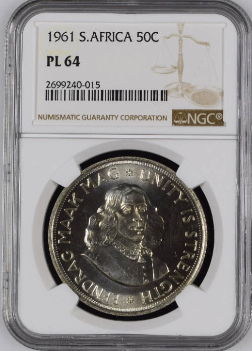 South Africa Silver 1961 Crown / 50 cent NGC Graded PL64