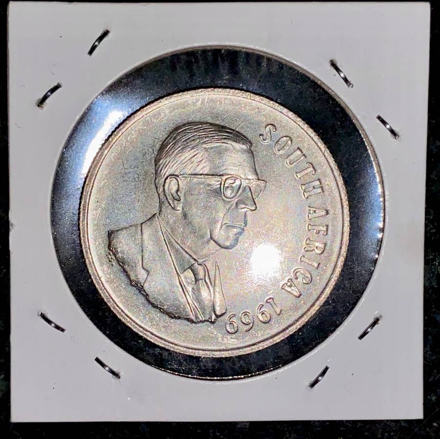 SOUTH AFRICA SILVER R1 --1969 ENGLISH GOOD CONDITION SILVER 80% SOUTH AFRICA SILVER R1 --1969 ENGLISH GOOD CONDITION SILVER 80%