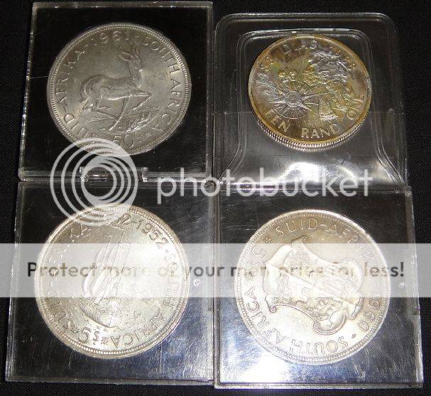 South Africa : Three Silver Crowns (1952, 1960, 1961) & 1988 Proof Silver R1 (Dias Commemorative)