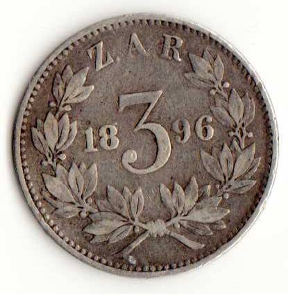 SOUTH AFRICA ZAR THREE PENCE 1896 SILVER                SUN2200
