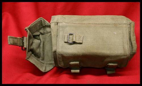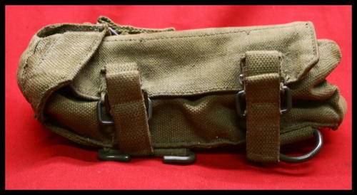 South African Bush War Ammo Belt used for carrying belted ammunition. We have seen pouches just like this listed previously and have been listed as Rhodesian Bush War A466 Ammo Belts - but we cannot confirm this. As far as we know they are South African. There are no lables or makers marks.