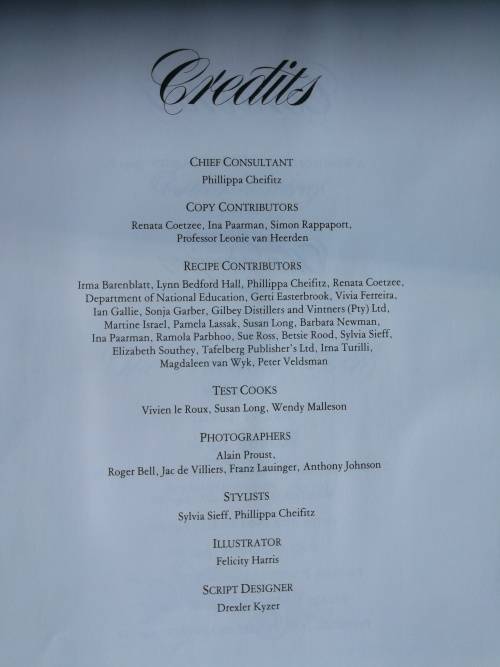 READER'S DIGEST SOUTH AFRICAN COOKBOOK Hardcover ; First edition 1985 ; Reprint 1987 ; ISBN 0 947008 24 1 ; No. of Pages ; 400 Editor ; Vincent Le Roux ; Chief Consultant Phillippa Cheifitz ; Copy Contributors ; Renata Coetzee ; Ina Paarman ; Simon Rappaport ; Professor Leonie van Heerden .