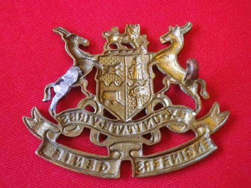 SOUTH AFRICAN ENGINEERS CORPS. GILDING METAL CAP BADGE 1922-1938 - 1 LUG MISSING