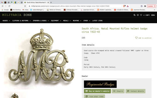 SOUTH AFRICAN MILITARY - NATAL MOUNTED RIFLES CAP / BERET BADGE - circa 1922-43