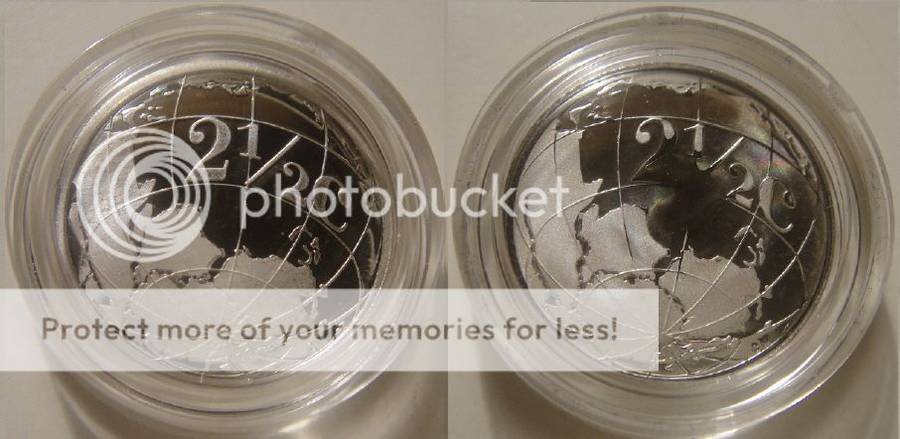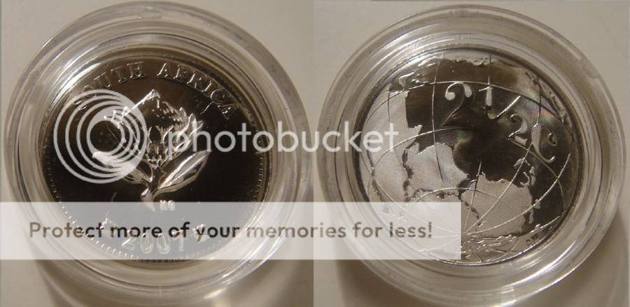 See the lower end of the1 and the dash between ½. The second picture shows the error coin on the right and a normal coin on the left. The third picture shows the obverse and reverse of the error coin. Also notice the flatness of the Protea flower.