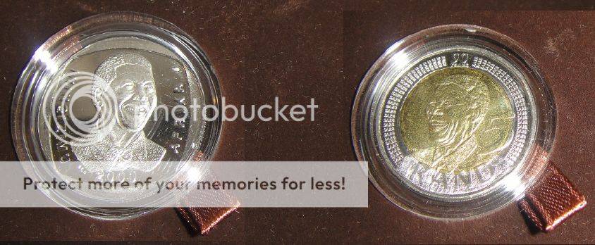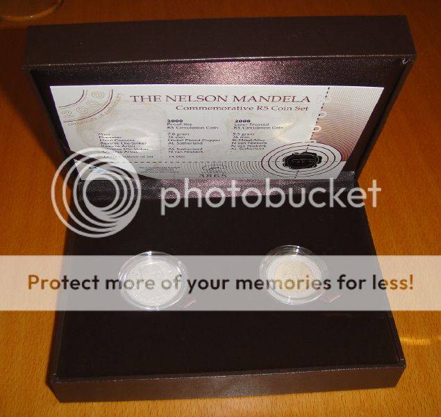 South African Mint: Nelson Mandela R5 Set (Proof-Like 2000 & Laser Frosted 2008)