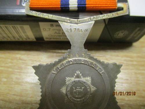 South African Police Star for Merit named to Sers. (Sersant) W.J. Hampson 21784 w on 28/4/76. Medal condition E F ++++. Local post and packing R 75-00 with tracking no.