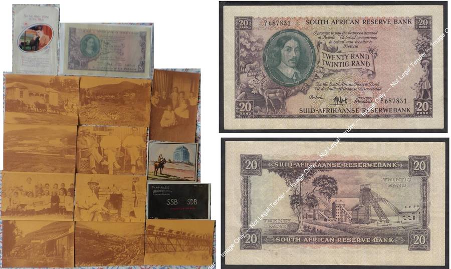 The note is in very collectable condition and comes with some vintage greeting and post cards relating to the Pilgrims Rest Museum, Voortrekker Monument 1949, South African Service Corps (probably early 1930s) and an Afrikaans written message on a "Little Grey Home in the West" post card (probably early 1900s).