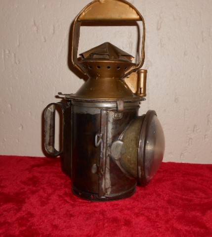 Three colour lenses: White, Red, and Green. Spirit burner inside. Lens stamped SAR