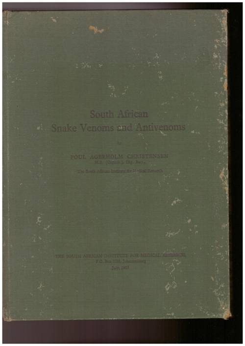 South African Snake Venoms and Antivenoms, By Poul Agerholm Christensen, Published by The South African Institute for Medical Research 1955