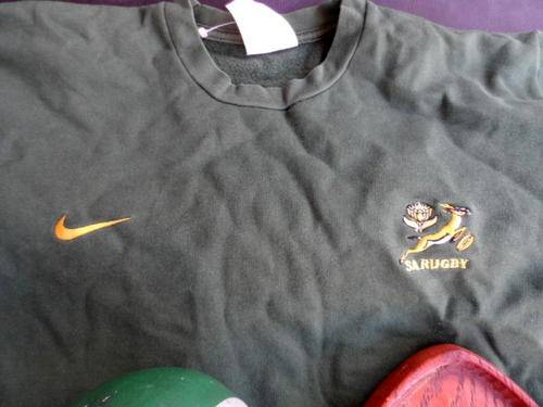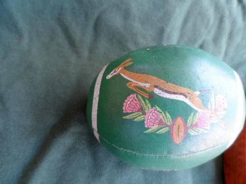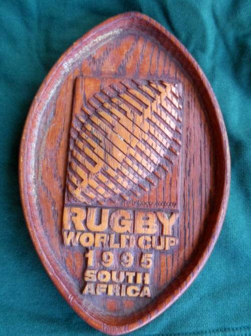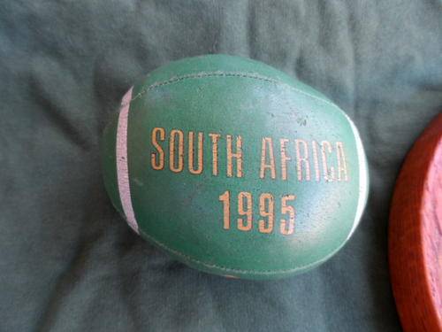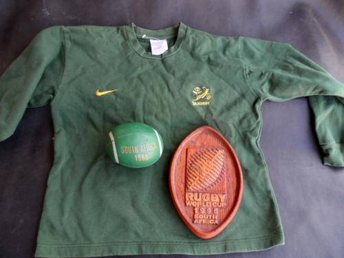SOUTH AFRICAN SPRINGBOK RUGBY MEMORABILIA. 1995 FOAM RUGBY BALL. WOODEN PLAQUE. SPRINGBOK SWEATER.