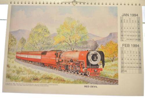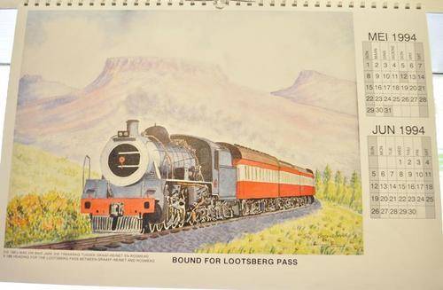 South African Steam Train Theme 1994 Calendar - Water Colour Print Illustrations by J.N.C Boonzaaier - 1993.