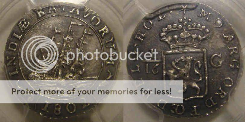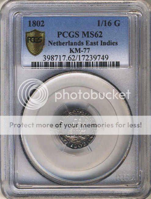 South Africas FIRST Coin: PCGS Graded MS62 : Netherlands : Batavia : 1/16 Ship Guilder of 1802