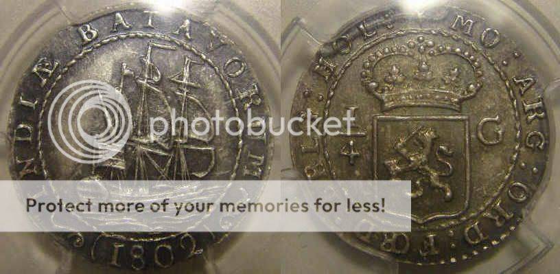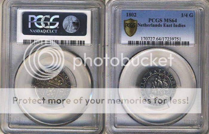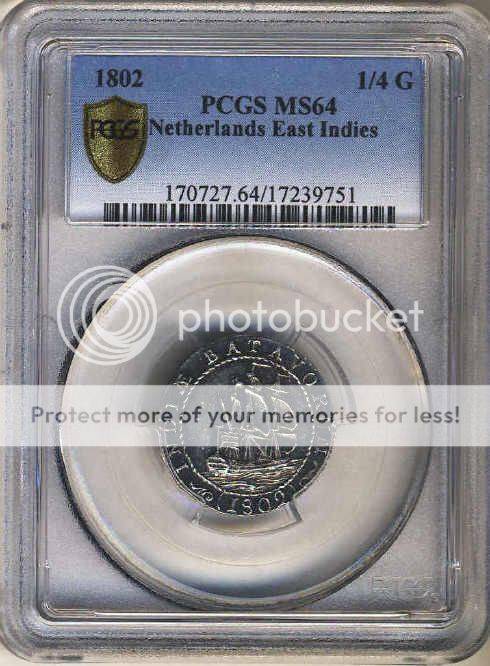 South Africas FIRST Coin: PCGS Graded MS64 : Netherlands : Batavia : 1/4 Ship Guilder of 1802
