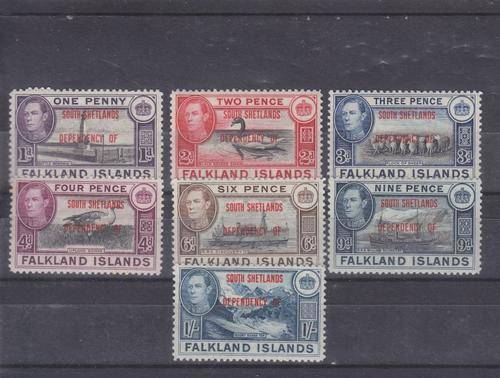 SOUTH SHETLANDS ++ OVPT ON FALKLANDS 1944 ++ KG VI ++ SET OF 7 ++ MNH ++ C/V £23 ++ SG D1-D8