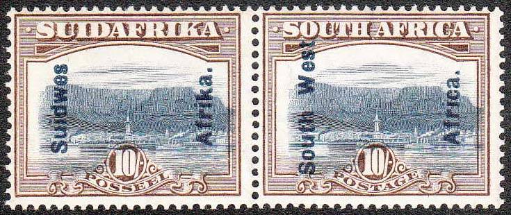 South West Africa 1926 Overprints 10/- pair fine MNH. Brownish gum. (Condition as per scan(s) which forms part of the description.