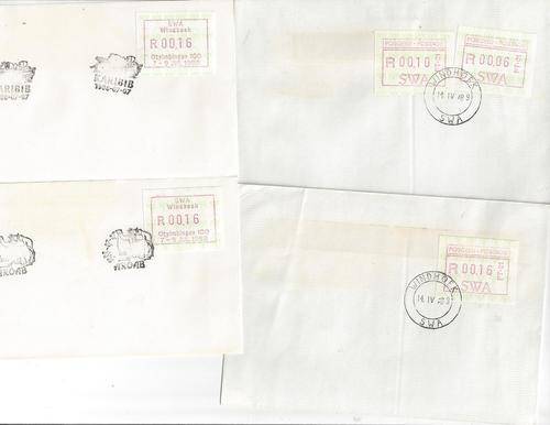 SOUTH WEST AFRICA 1988/89 Frama labels lot of 7 covers, very fine.