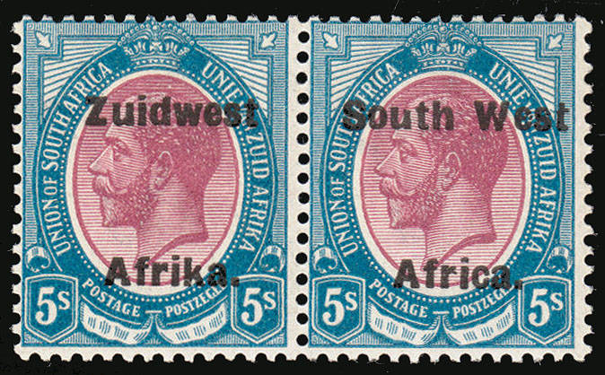 South west Africa Union 1924 KGV ovpt type VI bold 5s purple and blue very fine LMM.