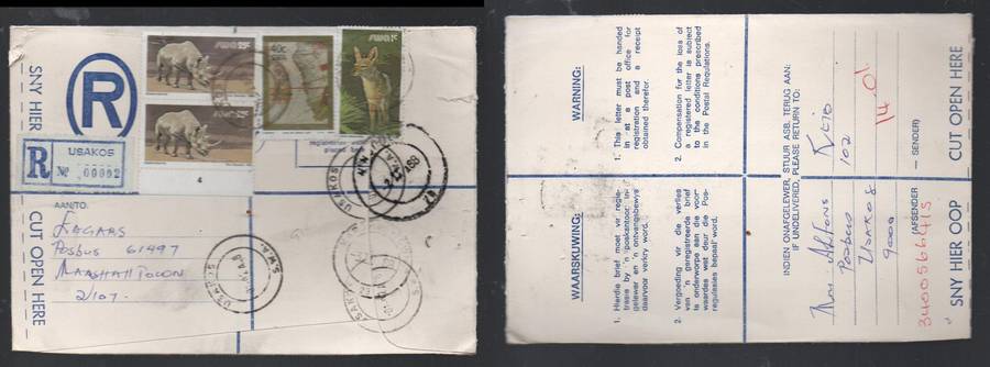 South West Africa, registered 91cents, UIS 1 II 88 cds > MARSHALL TOWN, ?? transit