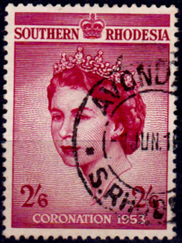 SOUTHERN RHODESIA, 1953. Coronation of Queen Elizabeth II. Single issue, used, previously hinged. Hinge remains on back. View scans for condition as it form part of the description, CV R 140.00. Note, display card not included, and, the line across the images are due to the display card that we use to scan items.