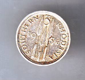SOUTHERN RHODESIA 3 PENCE 1934 - DECENT GRADE