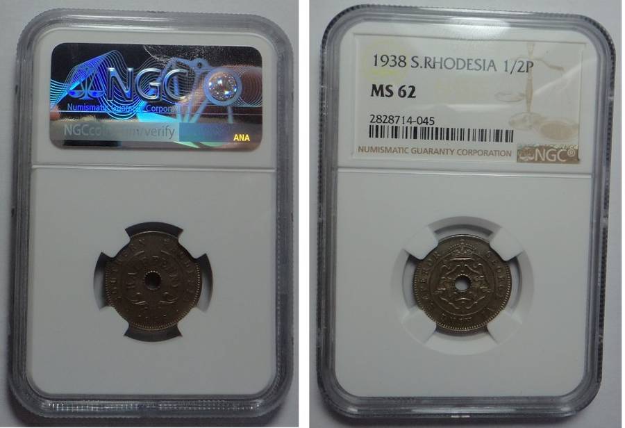 Southern Rhodesia: Half Penny of 1938: NGC graded MS 62