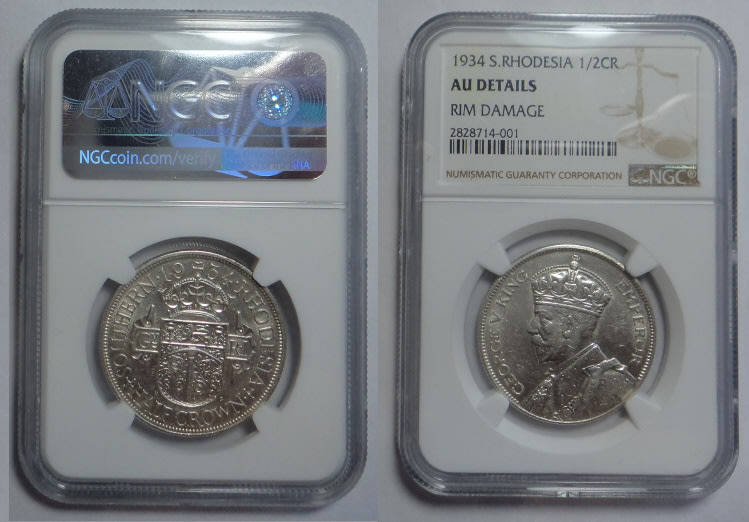 Southern Rhodesia: Silver Half Crown of 1934: NGC graded AU Details