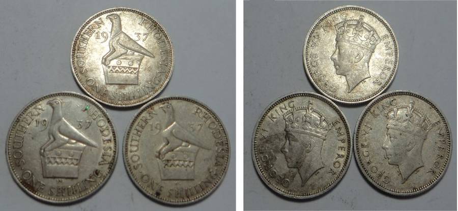 Southern Rhodesia: Silver Shilling of 1937 (One bid takes 3 coins)