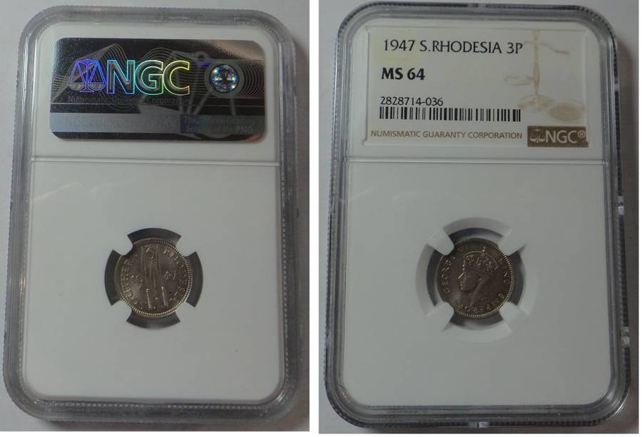 Southern Rhodesia: Three Pence of 1947: NGC graded MS 64