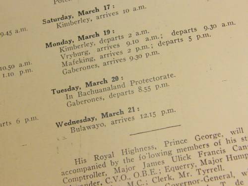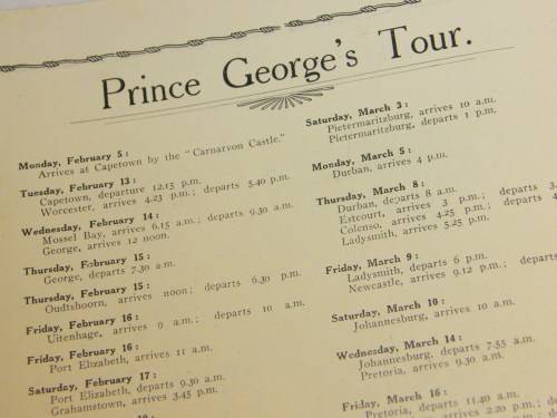 Souvenir Programme for the 1934 visit of Prince George to South Africa